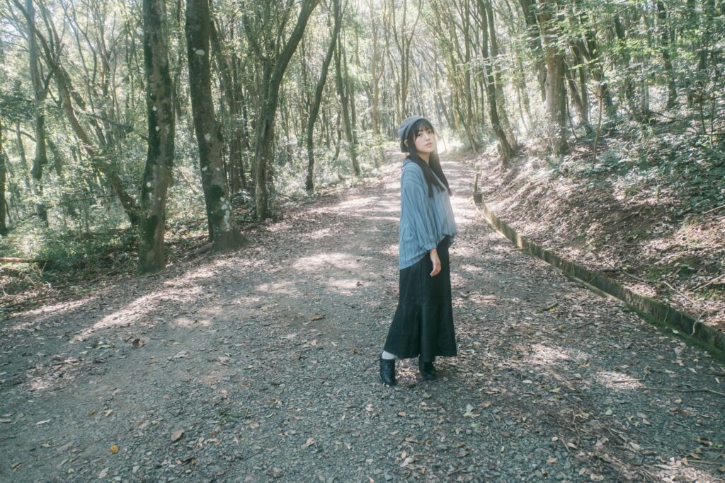 立田山では、無理にポーズを作らなくても、その場に佇むだけで絵になる瞬間が多くあります。