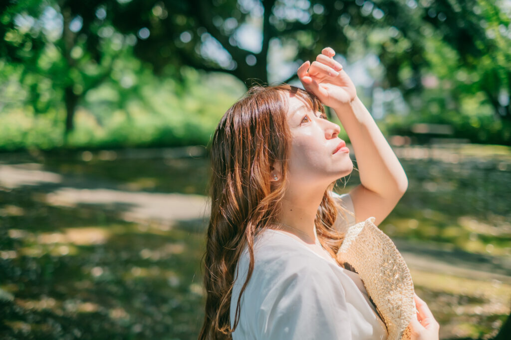 - 麦わら帽子:夏らしさを象徴するアイテム。光と影のコントラストが顔に落ちることで、季節感が表現できます。