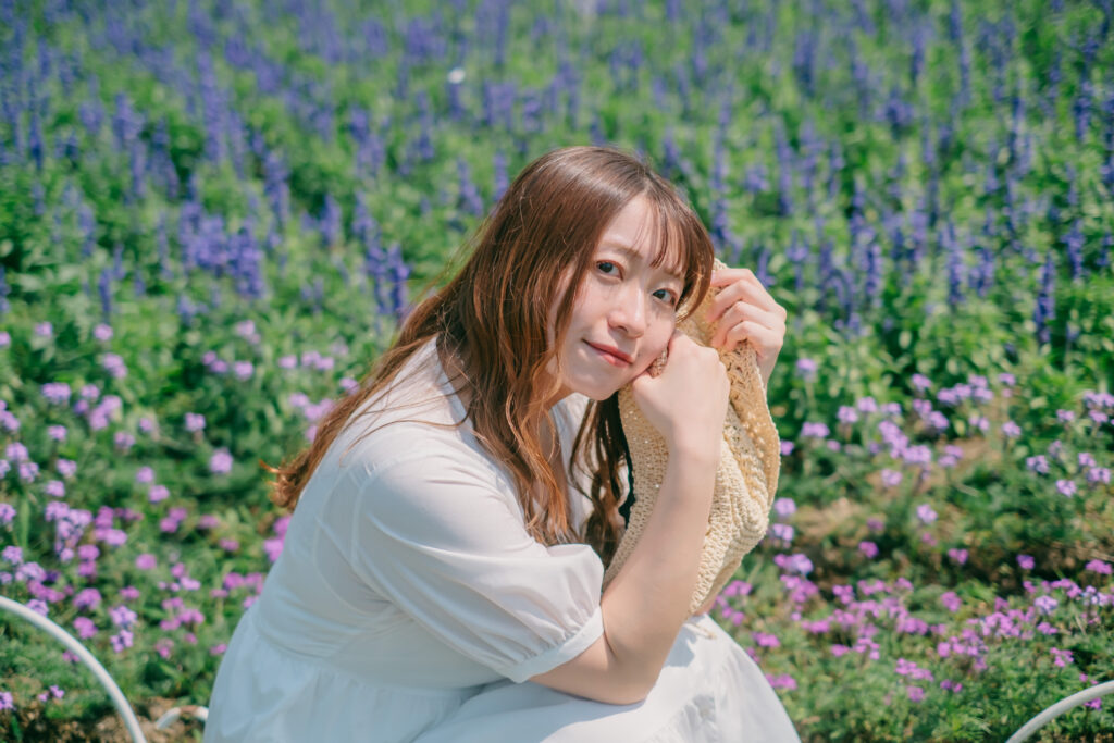 また、初夏は風が心地よく吹く季節。スカートや髪が自然に揺れる瞬間を狙うと、動きのある写真になります。