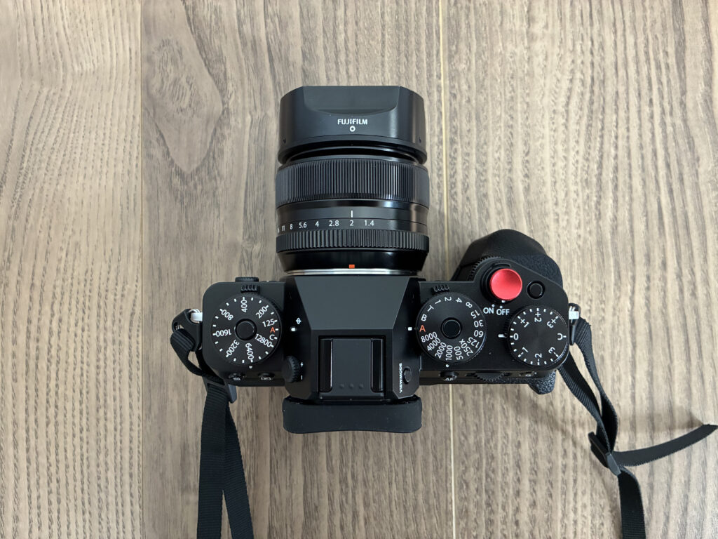 X-T5は、上部にシャッタースピードやISO感度を調整するダイヤルがあります。