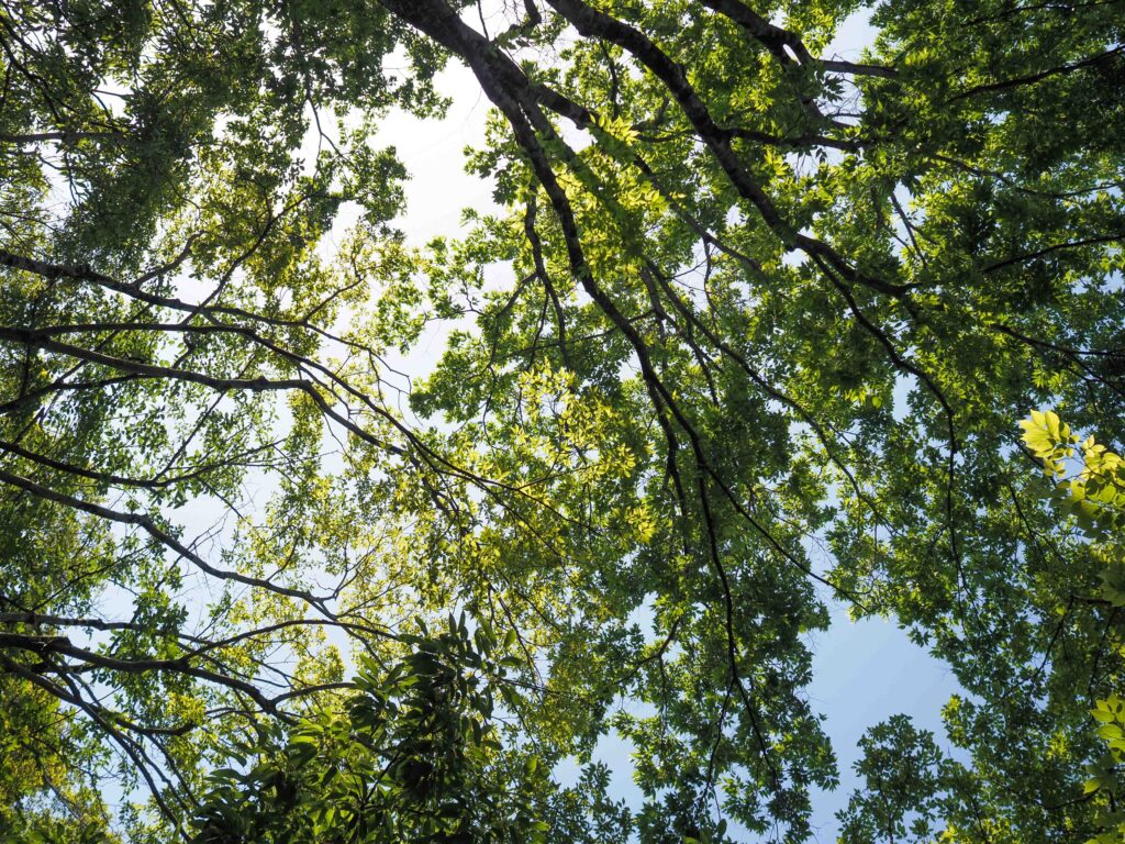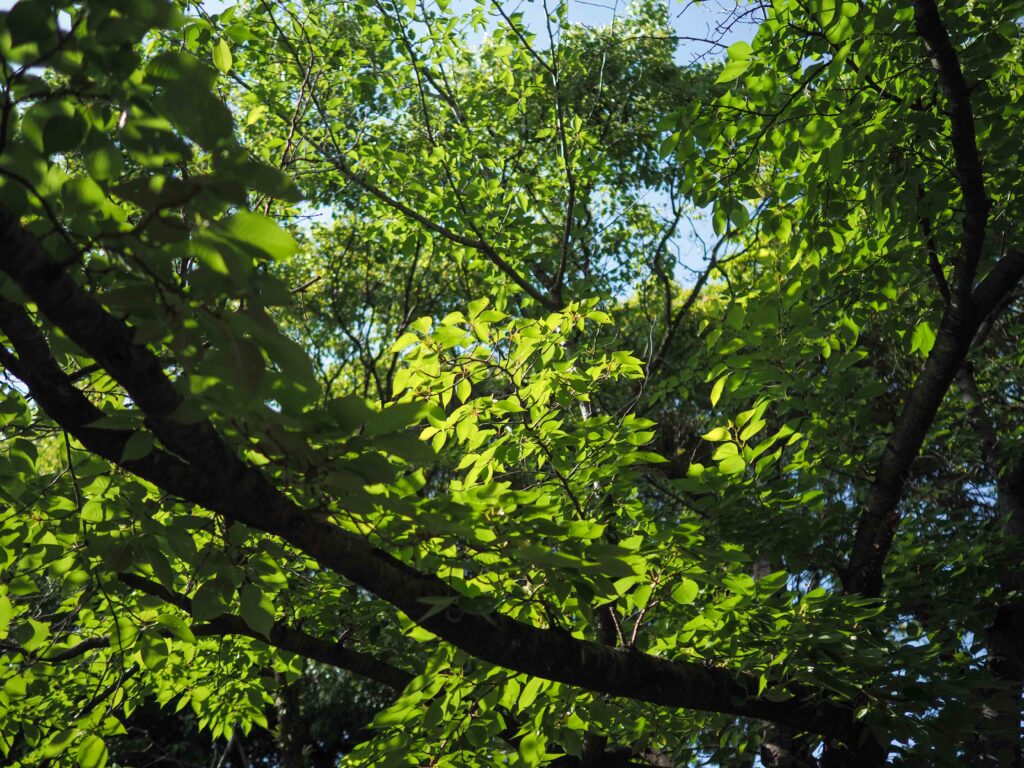 開放F1.8ではやや柔らかな描写の印象ですが光が当たった葉などその場の空気感が伝わってきます。