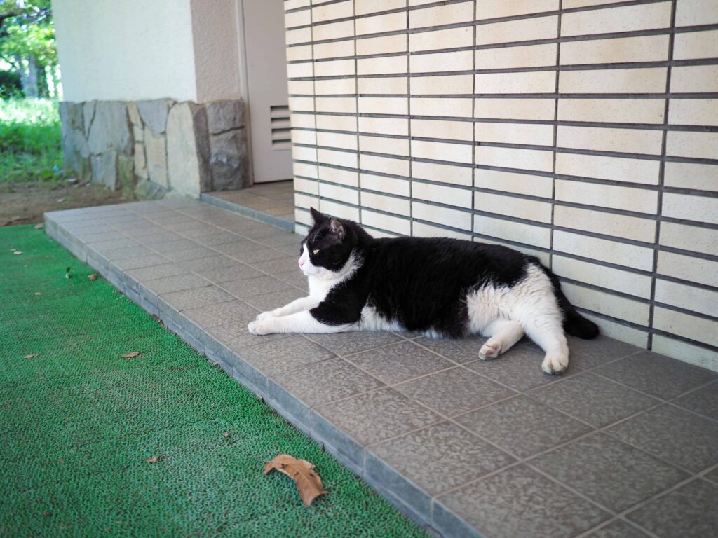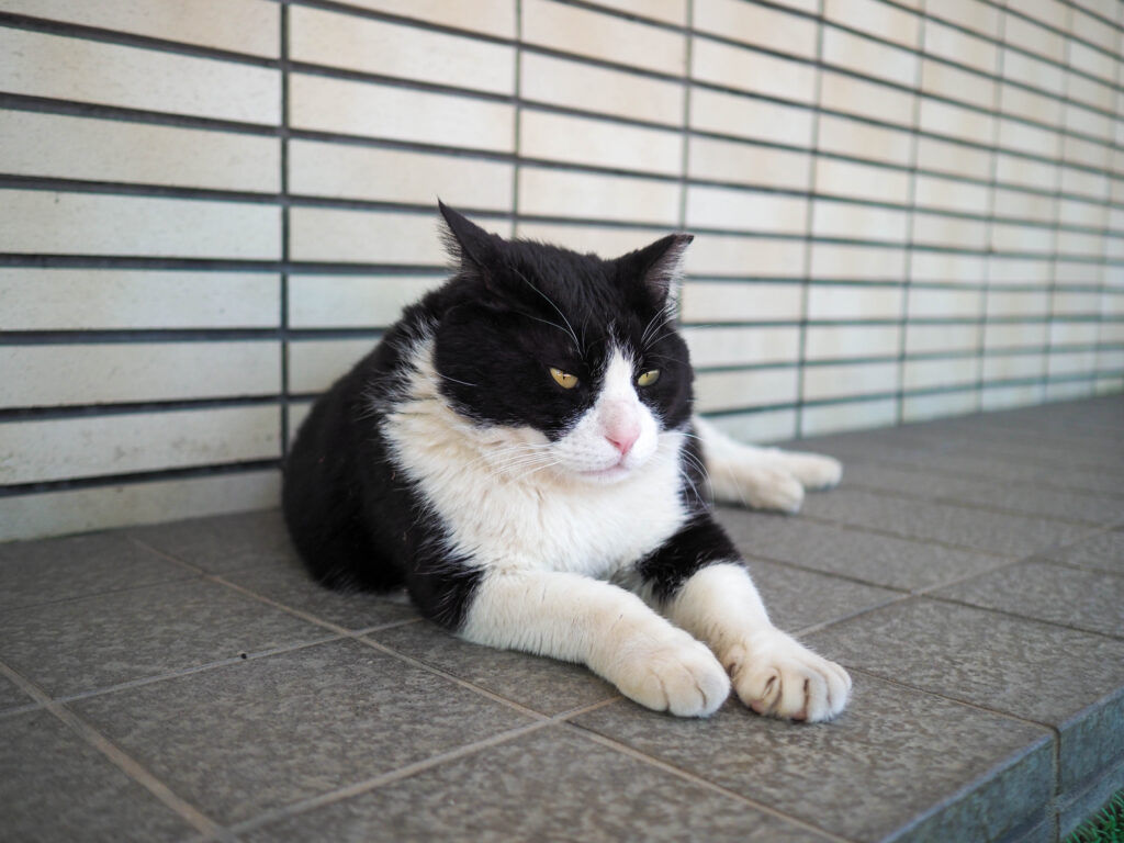 人馴れしている野良猫ならちょうど良い距離感で撮影できます。それにしても貫禄がすごい…